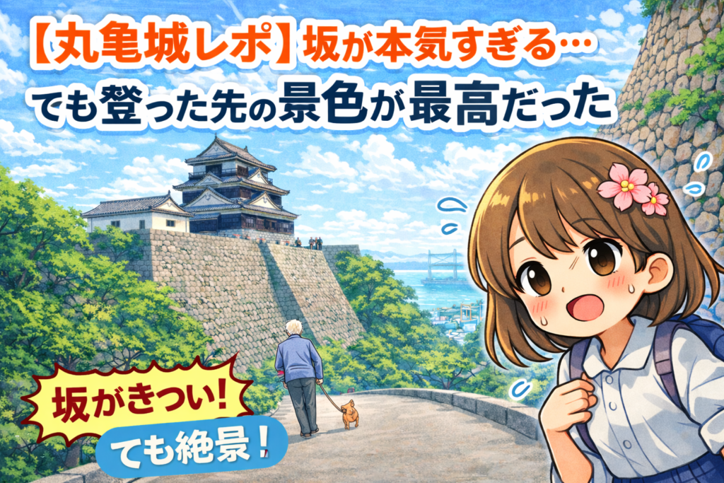 香川・丸亀市の中心部にある丸亀城。 町の中にあるし、正直そこまで身構えていませんでした。 「松山城よりは楽でしょ」 そんなふうに、少し油断していました。 ——甘かった。 目の前に現れた坂を見て、まずひとこと。 「え、これに登るの?」 想像以上に急... -
