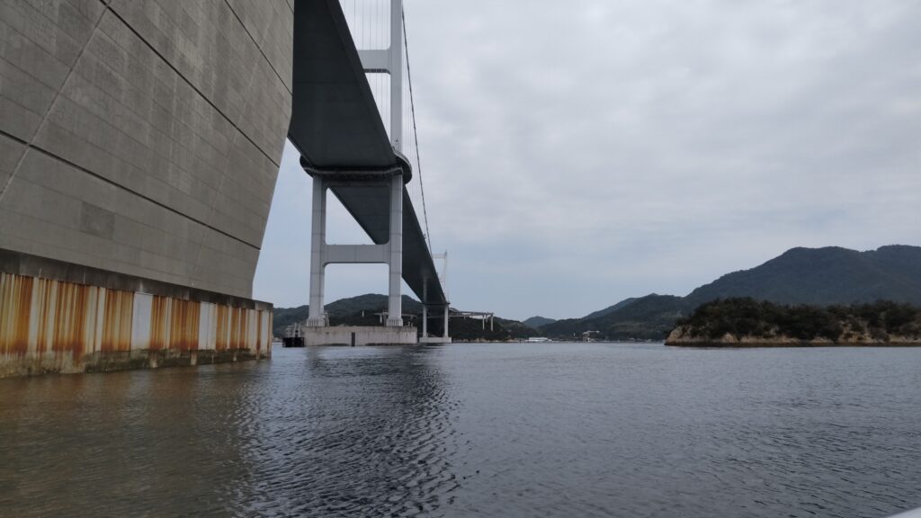 下から見上げる来島海峡大橋の壮大さは圧巻でした。